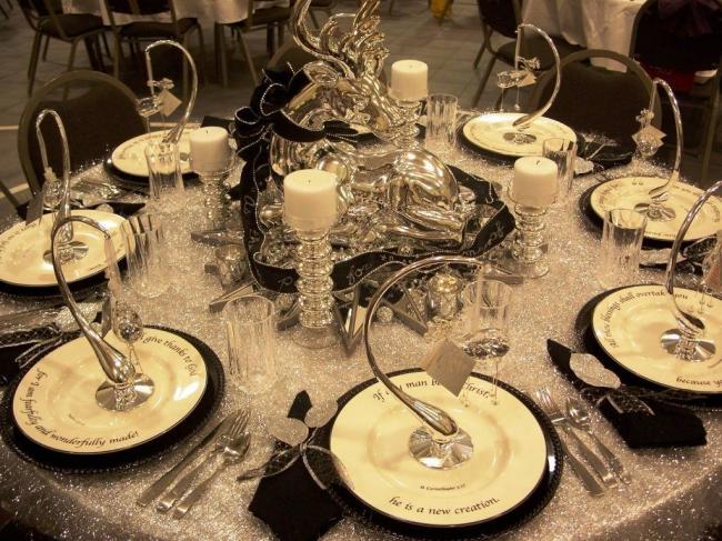 Идея 1. Оформление стола, выдержанное в необычном стиле и цветовой гамме