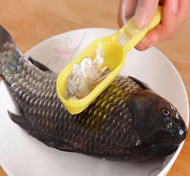 И также могут быть задействованы скребки особой формы, обладающие закрывающимся контейнером, в котором будет собираться чешуя. Таким приспособлением достаточно просто провести по поверхности рыбы несколько раз, периодически освобождая контейнер от скопившихся чешуек. Большинство подобных устройств приспособлены для движения в обе стороны.