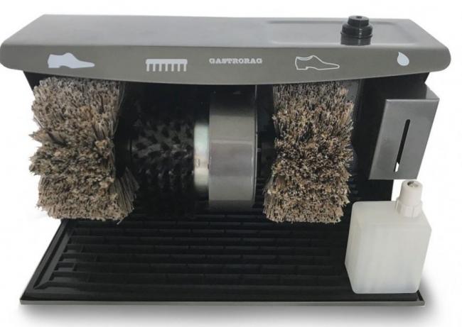 Электрическая машинка для чистки обуви Gastrorag JCX-12 предназначена для установки на полу. Работает от розетки, а небольшие размеры позволяют с легкостью разместить ее в любом удобном месте. Подходит для, дома, офиса и небольших компании. Корпус выполнен из стали и покрыт водоотталкивающей порошковой эмалью. Работает прибор от простого нажатия ногой, на покрытую резиной кнопку. Машинка оснащена одной жесткой щеткой предназначенной для удаления грязи и двумя полировочными из синтетического волокна, которые не повреждают покрытие кожи. Также производители предусмотрели контейнер для крема с удобным дозатором, а также с прорезью при помощи которой можно контролировать уровень чистящего средства. Нижняя часть оснащена съемным резиновым ковриком при помощи которого можно очистить подошву.