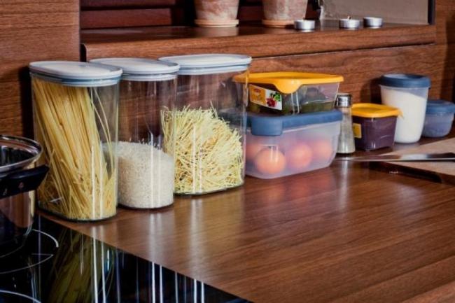 - Для хранения остатков, а также макаронных изделий, купленных на развес, используйте контейнеры из пластмассы, керамики или обычные стеклянные банки.