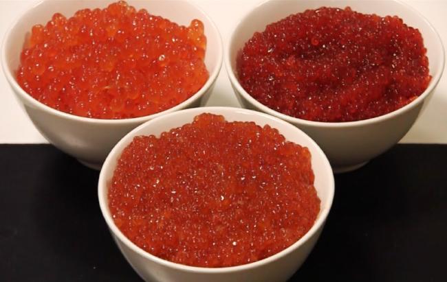 Красную икру получают благодаря рыбам семейства лолосевых – форели, горбуши, кижучи, нерки и кеты. Обладая идентичным составом и набором микроэлементов, икра этих рыб различается между собой вкусовыми характеристиками и внешним видом.