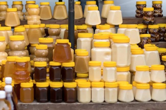 Обычно пчеловоды складируют мёд в большую тару, например деревянную бочку, и хранят его плотно закрытым. После экспертизы, сладкий продукт разливают в небольшие стеклянные банки.