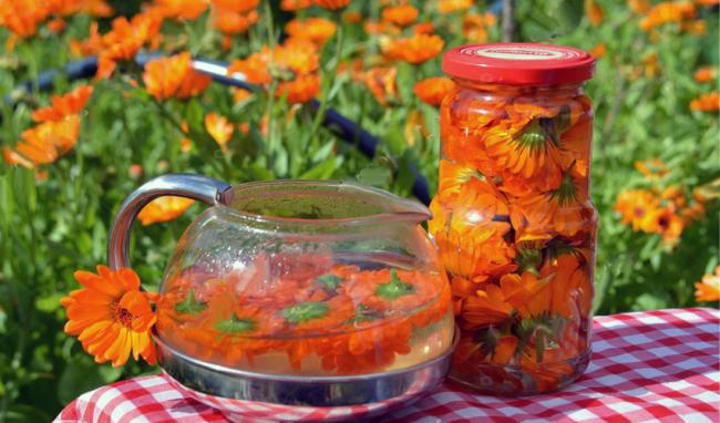 - Календула может быть использована как противовоспалительное и ранозаживляющее средство. Хорошо поможет при различных заболеваниях дыхательных путей, а также различных инфекциях полости рта.