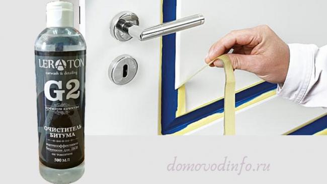 На бумажную основу малярной ленты нанесен прозрачный слой каучукового клея. Тонкий клейкий след убирают ластиком. Толстые застаревшие отметины счищают следующими способами: