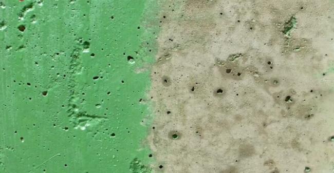 - Когда краска нанесена два-три дня тому назад, очистить бетон можно губкой, смоченной в воде.