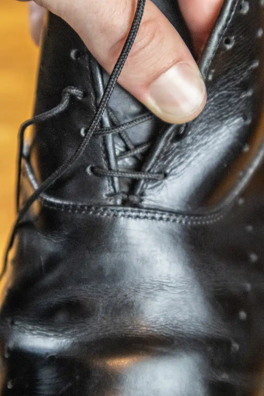 Эта техника позволяет выполнить прямую шнуровку на любом типе парадной обуви.