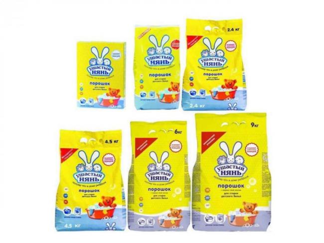 Моющее средство для стирки “Ушастый нянь” производится компанией «Невская Косметика». Технологи разработали такой состав этой продукции, что она подходит для детей всех возрастов, в том числе и самых маленьких. Формулу порошка разрабатывали с учётом специфики загрязнений, что чаще всего наблюдаются на детской одежде. “Ушастый нянь” замечательно удаляет пятнышки от молока, соков, фруктового и овощного пюре, а также физиологические следы жизнедеятельности.
