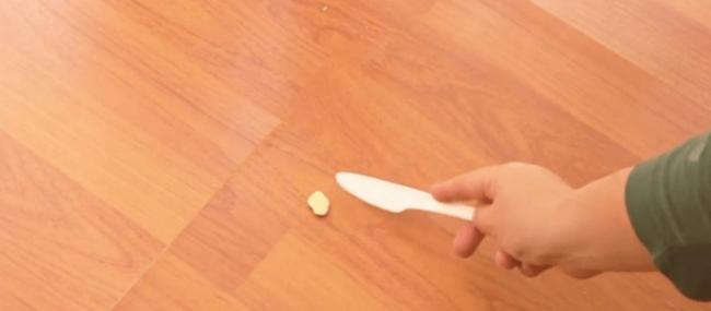 Мыльный раствор спасет и там, где присутствует урон от шоколада или сока. Капли воска удаляются с такого пола затвердевшими. Для безопасного удаления воска нужно пользоваться деревянной лопаткой или палочкой. Жвачку на полу намазывают маслом, а потом убирают тряпкой, смоченной в мыльном составе. Таким образом, она перестает тянуться и легко отделяется от пола.