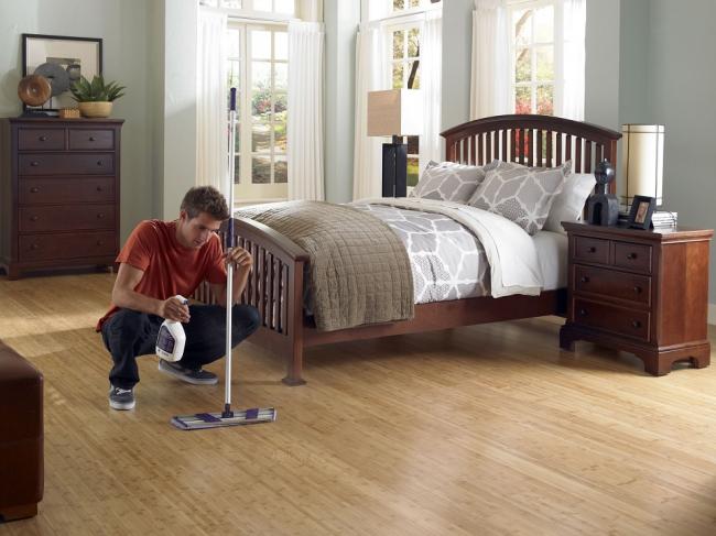 Матовый ламинат загрязняется значительно быстрее. Для ухода за ним приобретите спрей. Он легко удаляет грязь. Если делаете влажную уборку, в конце протирайте пол сухой тряпкой.