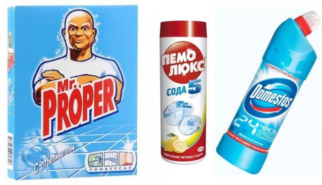 Если вас интересуют специализированные составы, удаляющие ржавчину и другие сложные пятна, следует отдать предпочтение специальным аэрозолям. Хорошо зарекомендовали себя такие средства, как Cillit Bang, а также Мистер Пропер универсал в виде порошка. Этот вид бытовой химии отлично справляется с грязью, не повреждая поверхность. Также очень неплохо справляются с этой целью всевозможные кремы и гели, к примеру “Пемолюкс”, а также “Доместос” (его чаще применяют для удаления ржавчины).