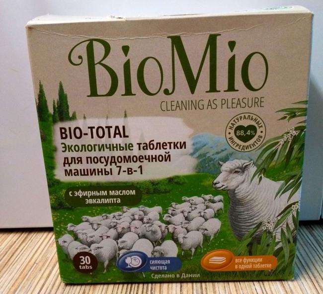 Датский производитель предлагает таблетки под названием BioMio Bio-total. Состав экологичен, для окружающей среды разложение продукции вреда не несёт.