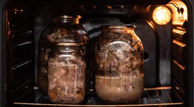 Банки в духовке устанавливают таким образом, чтобы они не соприкасались друг с другом и начинают разогревать после установки.