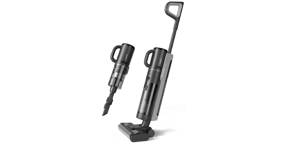 На пятом месте рейтинга стоит трансформер Dreame M12 – яркий представитель премиум-класса. Это выражается как в дорогом пластике, который приятно держать в руках, так и в функционале. В торце пылесоса вмонтирован большой дисплей. На него выводится заряд батареи, системные уведомления и режимы работы. При этом управлять просто – он сам повышает мощность в нужных местах. Пылесос тщательно собирает песок и мелкий мусор во время сухой уборки, за 2-3 прохода убирает свежую грязь.