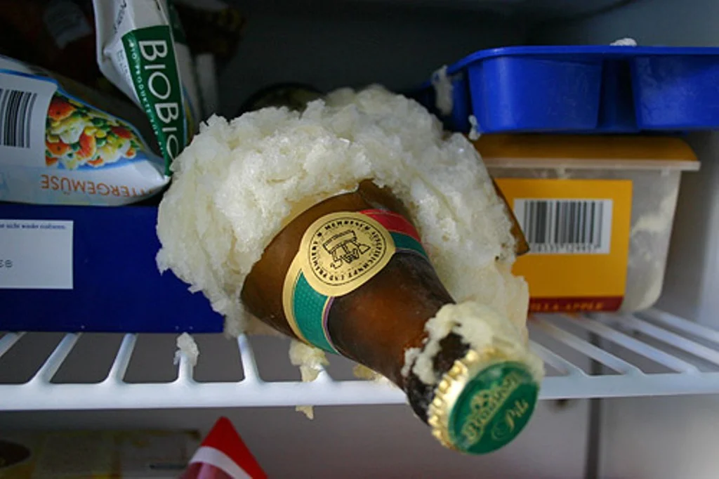 Чтобы объяснить далее, вода в пиве будет толкать пузырьки углекислого газа при отрицательных температурах. Это создает силу, которая может разбить стеклянную бутылку или выбить пробку, оставив вас с пролитым пивом.