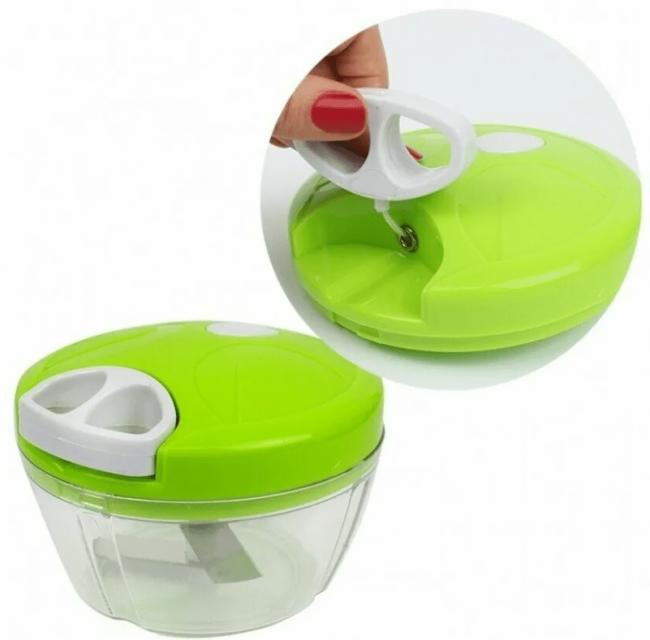 Нужно просто сложить мытые ингредиенты в чашу, закрыть крышку и дернуть за ручку. Поскольку миска привлекательно выглядит, ее можно использовать в качестве салатницы. Например, она может пригодиться вам на пикнике.