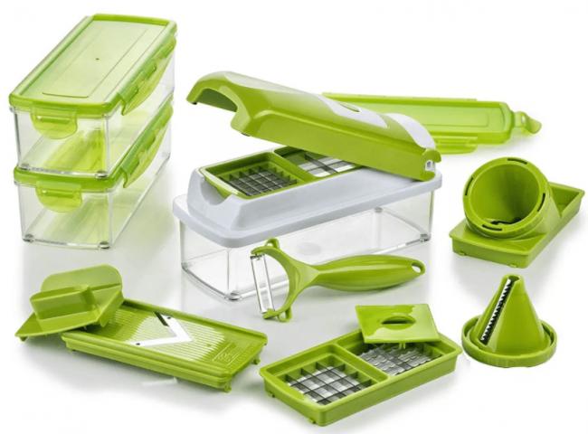 Всего за 533 рубля вы получите отличную овощерезку Speedy chopper NicerDicer, которая быстро нашинкует такие продукты, как яйца, сыр, зелень и другие – то, что пригодится для приготовления салатов. Этот гаджет прост в использовании, интуитивно понимаешь, как им пользоваться.