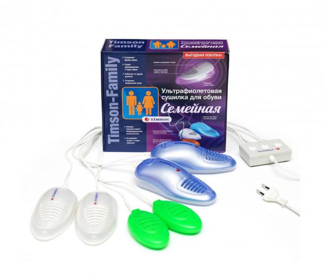 Аппарат Тимсон незаменим для тех, кто хочет, чтобы обувь всегда была в порядке, а риск заражения грибком свелся к минимуму. Такое устройство хорошо тем, что оно не только ее сушит, но и дезинфицирует. Особенно помогает аппарат осенью и весной, когда на улице сыро, а центральное отопление не всегда работает.