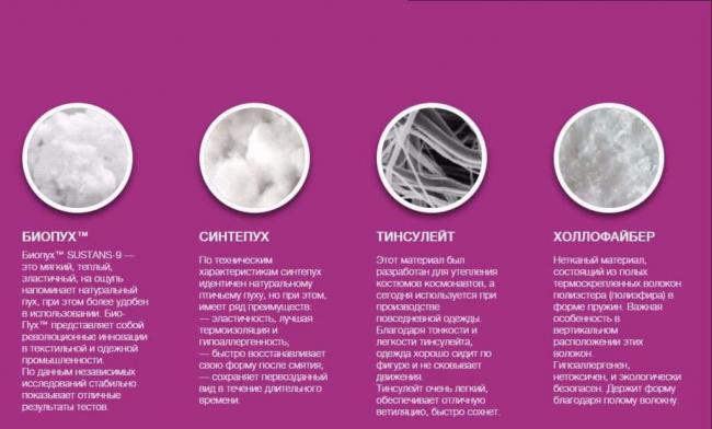 К тому же биопух представляет собой наполнитель, тогда как тинсулейт считается готовым полотном. Потому при длительном ношении биопух постоянно смещается. Это приводит к образованию плотных участков и комков.