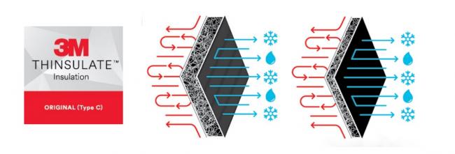 Применяемый в качестве утеплителя thinsulate позволяет коже тела дышать. Он не накапливает пыль и микроорганизмы, не воспламеняется при контакте с огнем (но плавится), устойчив к воздействию влаги и посторонних запахов. Эти свойства, наряду с легкостью, обусловили популярность материала.