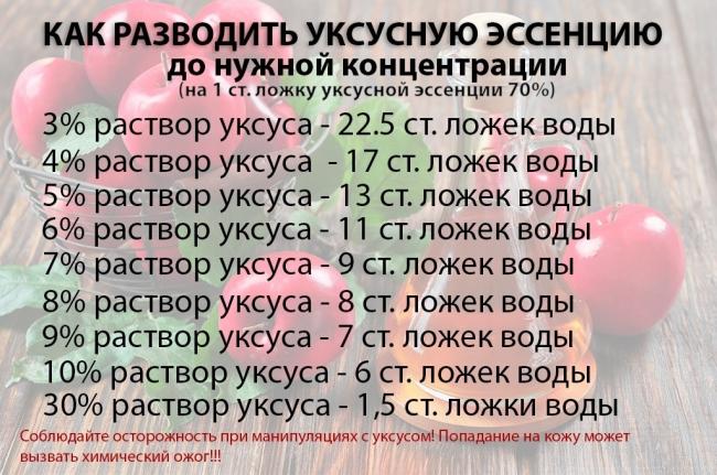 Таблица: «Как сделать 3%, 6% и 9% уксус из 70% уксусной эссенции»