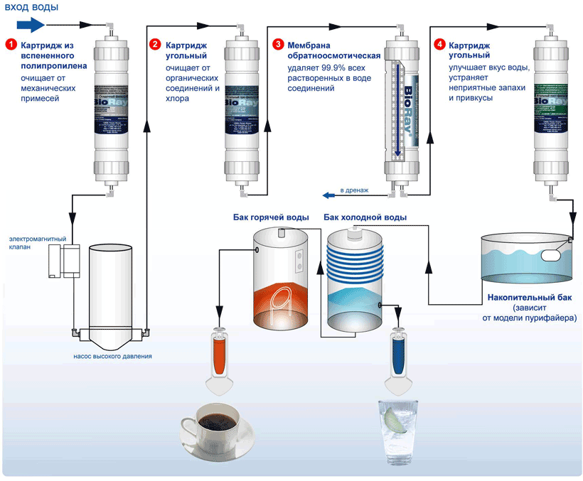 Главным преимуществом устройства является защита от болезнетворных и опасных примесей.