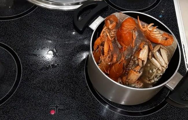 В некоторых рецептах можно сразу использовать замороженных ракообразных без оттаивания. В этом случае их просто кладут в кипяток и отваривают несколько минут.