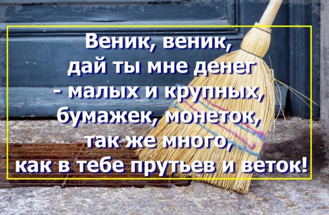 «Новый веник принесла, – деньги и благополучие в дом привлекла, от нищеты и бед избавилась».