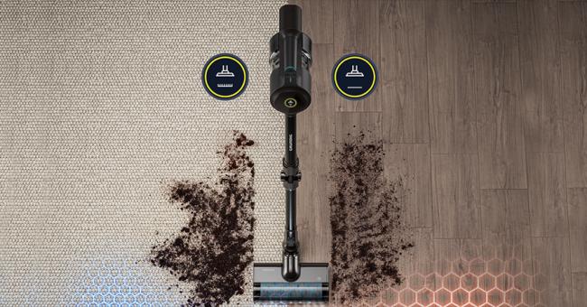 ● Умная насадка сама определяет тип поверхности, автоматически управляя мощностью всасывания для эффективной работы, например в модели VCP 9131.