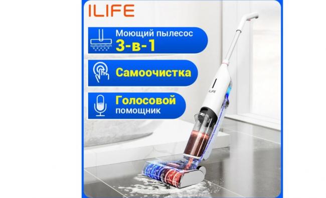 Вертикальный моющий беспроводной пылесос для дома ILIFE для влажной и сухой уборки с системой самоочистки