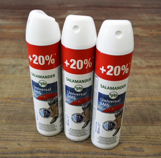 Средство добавляется в воду и может использоваться в стиральной машинке с барабанной сушкой. Универсальная высокоэффективная пропитка подходит для всех видов тканей. Обладает уникальным составом и полностью экологична. Выпускается во флаконе 300 мл. Цена – 1200 рублей. - Salamander Professional Universal SMS.