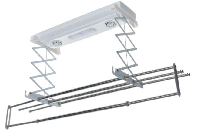 Wellex CH4200 полуавтоматическая конструкция, при помощи которой можно легко и быстро опустить или поднять штанги на нужный уровень. Крепится модель к потолку, что позволяет располагать их в помещениях любых размеров. Производят их из прочного материала устойчивого к влаге и перепадам температур. У конструкции имеются съемные и откидывающиеся балки, что позволяет сушить белье различных размеров.