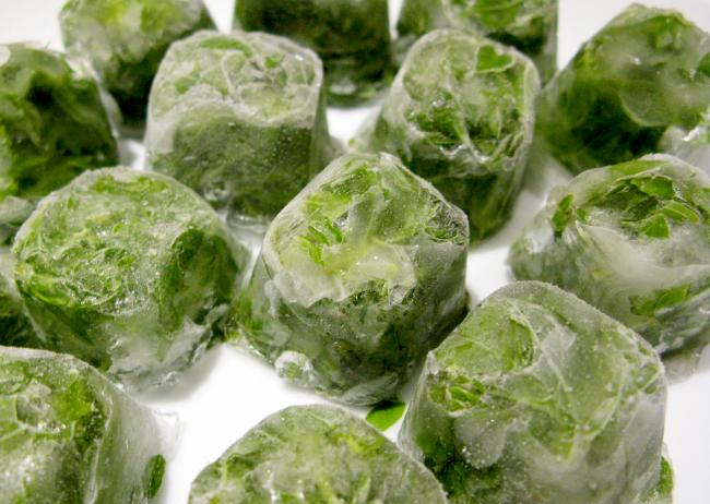 Способ замораживания кубиками быстрее остальных, потому что пряности можно не высушивать. Для приготовления понадобятся формочки из пластика или силикона (в которых готовится лед или выпечка). Таким же образом можно замораживать травы для косметических процедур. Способ приготовления: