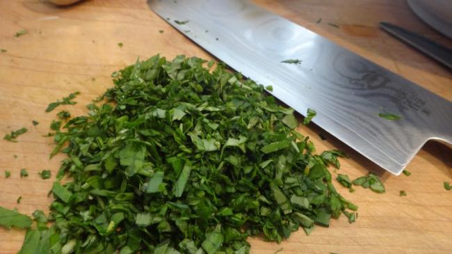 - Мелко нарезают ножом либо ножницами.