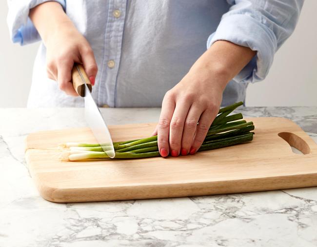 - хорошо промытые и подсушенные перья порубить ножом (не слишком крупно);