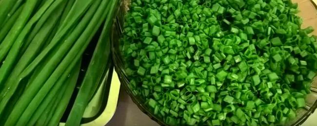 - вымытую и обсушенную луковую зелень нарезают обычным способом (крупность регулируют по собственному вкусу);