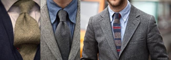 Это может показаться странным для неискушенного человека, но галстук можно, а иногда и нужно, покупать, ориентируясь на время года. Что здесь имеется в виду? Зимой мы часто носим твидовый или фланелевый пиджак, неотъемлемый элемент стиля кэжуал. Именно с ним гармонично будет смотреться шерстяной галстук. Не такой официальный как шелковый, но уместный в большинстве ситуаций.