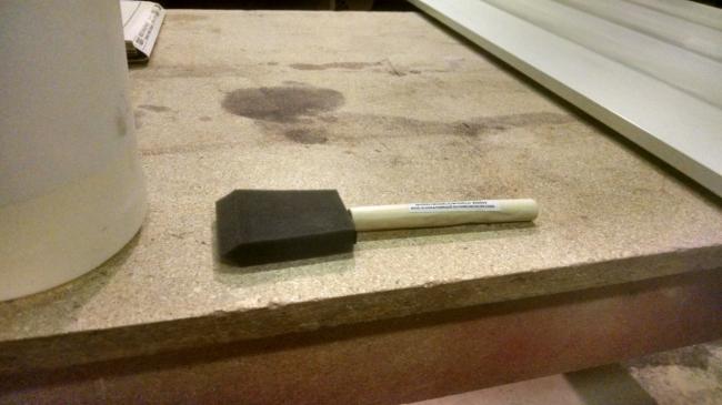Разгоняем раствор вот таким не хитрым шпателем. Раствор должен стекать со всех сторон (не забывайте это столешница)